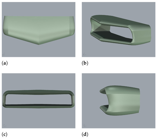 Figure 1a–d, shows the final CAD configuration of the platform, obtained using Rhinoceros software.