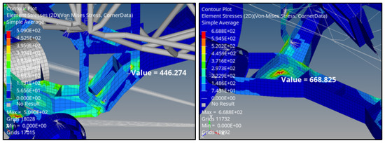 Local stresses on critical rover components. Thermal interface stresses on the left and chassis main stresses on the right.
