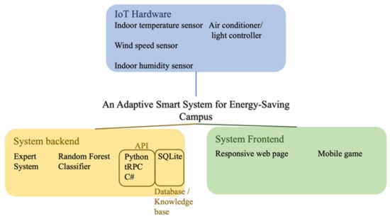 Therefore, we developed an adaptive smart energy-saving campus system by using a random forest (RF) classifier to categorize and predict users’ habits of electricity usage. Expert system rules were adopted to control air conditioning, lighting, temperature, and humidity according to the class schedule. According to the predicted user habits by the system, a responsive web design method was employed to develop an Internet of Things (IoT) control interface to reduce costs and enhance convenience. Gamification elements were introduced to create an “achievement system” to motivate users to continuously engage in energy-saving practices.