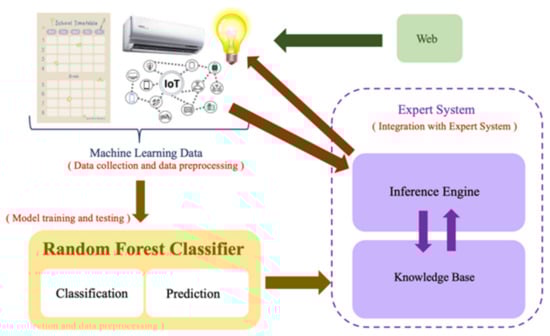 ML is used to develop algorithms and statistical models to train models to learn from data and continuously improve based on experience, rather than simply execute fixed actions based on an existing code. Its advantage is the ability to train algorithms from large datasets to identify patterns and automate tasks without human intervention. Using ML, the developed system learns a vast amount of user habits and incorporates this information into the knowledge base of the expert system for the decision making of the expert system regarding energy-saving judgments.