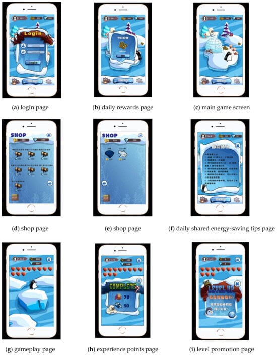 Figure 9f). Users used the money they earned from daily logins to purchase decorative items for their penguin (