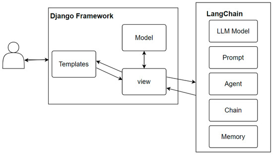 A system was developed based on the Django web application framework combined with LangChain. In using the LangChain, different component combinations were utilized to develop different versions of operational modes, sequential query, and agent query. The LLM interface interfaces with the OpenAI GPT-4 API and improves query accuracy. Chains are used to combine prompts and LLMs to accomplish tasks, while agents plan how to use tools and prompt the LLM for subsequent actions based on the questions. The memory function was implemented through LangChain’s Conversation-BufferMemory to store dialogue messages in a buffer and pass the messages to the prompt template. This allowed the agent to maintain contextual continuity when handling tasks, thereby enhancing the overall system performance and accuracy (Figure 1).