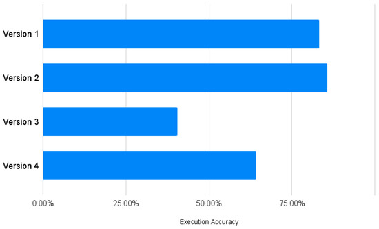 We tested the four versions with the 42 designed questions and calculated the execution accuracy using (1).