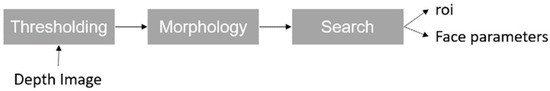 The size of the input image was 848 columns by 480 rows, which was too large for the system to achieve high execution speed. Apart from the speed, the error rate must be reduced. By highlighting the facial region on images, confusing objects such as the background or the users’ clothes were omitted. Figure 3 shows the flow chart of image preprocessing. The region of interest (ROI) contained the facial region. Other parameters such as average intensity were also recorded (Table 1). The eye-tracking method measures the distance between the camera and the user less than 700 mm; so, the thresholding was defined as (1).