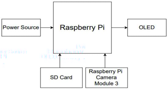 Figure 2 shows the hardware of the developed system. The system consisted of Raspberry Pi 4, Raspberry Pi camera module 3, an SD Card, OLED, and a power source. As the system’s microcontroller, Raspberry Pi 4 processed the inputs and outputs of the system. Raspberry Pi camera module 3 was connected to Raspberry Pi 4 for data collection. The camera module also captured images for classification. The SD card stored the operating algorithms, and an OLED display showed the results of wetness classification and estimation.