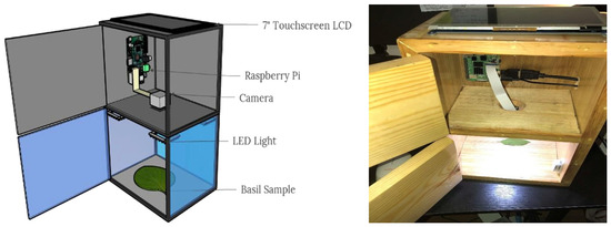 The system’s block diagram is displayed in Figure 2. Basil leaf images were captured under LED lights. The general-purpose input/output (GPIO) and high-definition multimedia interface (HDMI) were used for display. Troubleshooting was performed to restore the system’s functionality if there were hardware or software-related problems.