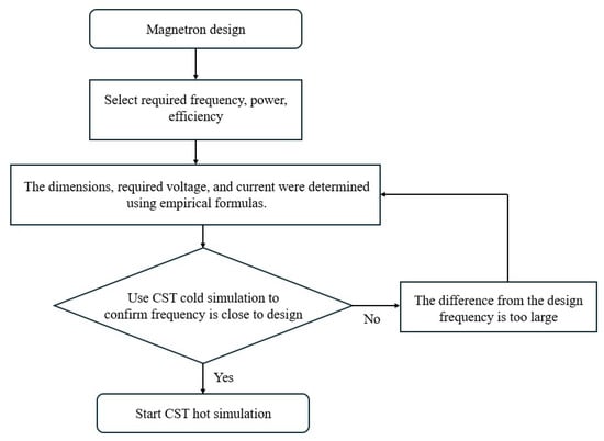 In this study, CST Studio SuiteTM (CST Studio Suite 2023) simulation software was used for modeling and hot and cold simulation. Eigenmode analysis, also known as cold simulation, is used in a simulation without a voltage or magnetic field, and particle-in-cell (PIC) simulation, also known as hot simulation, is conducted with a feed voltage and magnetic field. The time domain solver in CST was used in the radiation pattern simulation of the magnetron.