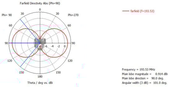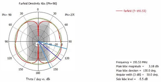 The field diagram simulation results provide an understanding of the radiation state, such as directivity and half-power beam width (HPBW), making the subsequent experiments efficient. The software used for this magnetic field simulation is CST, and the boundary conditions are set to “open”. The connection port is located at the bottom of the antenna, as shown in Figure 8.