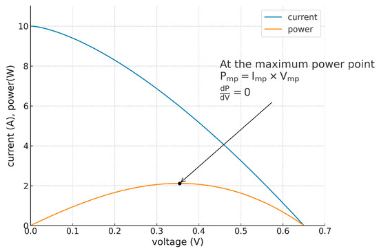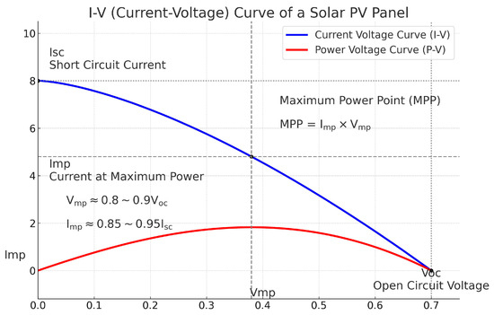 Imp denotes the current output of the solar panel when operating at the maximum power point voltage (Figure 2). Vmp and Vmp are used to determine the maximum power output of the panel under specific operating conditions. Imp is influenced by solar irradiance, temperature, and the internal resistance of the solar cells. It also represents the maximum current the panel can supply to an external load while operating at peak efficiency.