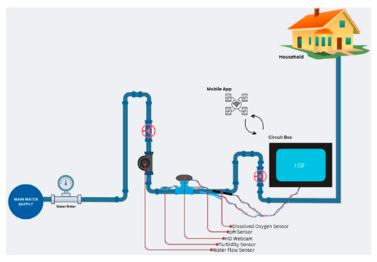 Water quality was assessed before reaching the storage tanks by deploying a Raspberry Pi 4 and a camera within the pipeline systems of three residential households in Batangas. The system supervised any object within the pipeline, displaying real-time data on an LCD screen and providing mobile app access. Using this system, registered users can access water quality readings and receive automated alerts through a dedicated mobile application. Data were transmitted to Firebase Cloud, with email notifications generated when contamination levels exceeded established thresholds (Figure 4).