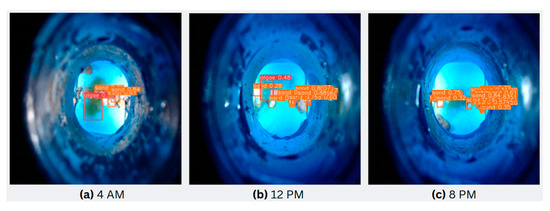 Pollutants identified by the system using YOLOv8 were derived from weekly household data and are presented in Figure 9 and Table 1. The results indicate the prevalence of the identified contaminants over a 24 h period, offering insights into daily patterns of water impurity.