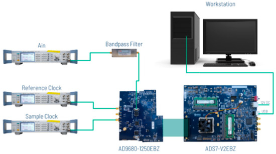 - Analog.com. Evaluating the AD9643/AD9613/AD6649/AD6643 Analog-to-Digital Converters. Available online: https://www.analog.com/media/en/technical-documentation/user-guides/UG-293.pdf (accessed on 16 December 2019).