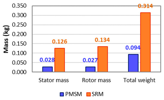 The mass of different segments depicted in Figure 8 indicates that the PMSM exhibits higher torque density.