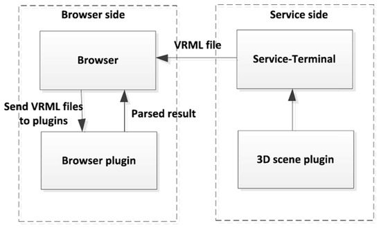 VRML files require a plugin for viewing on all workstations, as not all websites and browsers can interpret these codes. The plugins provide the connection between VRML and browsers and systems. This plugin reads data from VRML files. A VRML display system utilizing virtual reality technology enables browsing and access via the Internet. Programming modelling can be utilised with the VRML, and modelling with visual modelling toolkit software. The modelling of the real estate community environment’s shape, physics, behaviour, and related objects has been finished. Figure 4 displays the operational arrangement of the VRML plugin. Figure 5 shows the representation of a fixture element in a web browser through plugins.