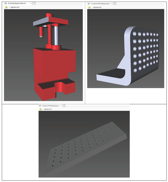 The created system supports collaborative fixture design production, as shown in Figure 6. Product designers can save parts on the server from anywhere. After developing a process plan, the process planner uploads the required XML data to the repository. The repository provides part data and the process strategy for remote fixture design. The repository stores fixture design data as an XML file. The process planner can locate and analyze this fixture design in their client system’s XML file. By updating fixture element inventory status in the database, fixture designers can let procurement planners track inventory via the web. This study shows the system’s Internet-based fixture design efficiency. The proposed system was evaluated using modular fixture components commonly utilized in manufacturing processes, as illustrated in Figure 5. This initial evaluation was limited to a select number of modular components.