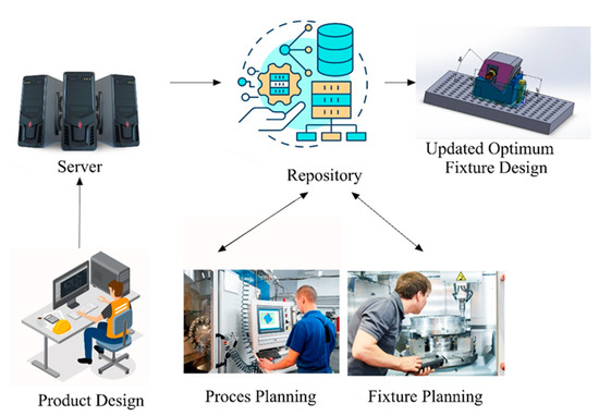 Fan et al. [1] created a collaborative fixture design system employing service-oriented architecture. Mervyn et al. [2] developed a fixture design information system to assist integrated design and manufacture. Rex et al. [3] introduced a versatile fixture design methodology to reduce workpiece distortion during milling operations. Mervyn et al. [4] created an Internet-supported fixture design platform. Duan et al. [5] presented the utilization of XML in graphic interchange technology for flexible fixtures, emphasizing the prospects for standardized data format and exchange in production settings. Li et al. [6] introduced a web-based system for optimizing process planning, highlighting the efficiency improvements attainable via centralized online platforms. Kang et al. [7] proposed fixture assembly planning within web-based collaborative environments, demonstrating the benefits of real-time collaboration and data sharing. Zuo et al. [8] developed a framework for energy consumption evaluation and analysis utilizing IoT devices and cloud-based analytics. Kim et al. [9] focused on retrieving CAD model data over web-based platforms, enabling interactive product creation in dispersed settings. Balakrishna et al. [10] investigated integrating CAD/CAM/CAE systems using STEP/XML formats, emphasizing interoperability and data exchange among various design and analysis tools. Rex et al. [11] developed a simultaneous technique for selecting the optimum fixture layout and clamping force. Song et al. [12] developed a digital mock-up system for complicated CAD assembly. Wang et al. [13] established a CAD/CAM combined system in a collaborative development framework. Jarzabek et al. [14] introduced an XML-based approach and tool for managing variant requirements in domain models. Rex et al. [15] devised a comprehensive fixture layout design methodology, employing finite element analysis and artificial neural networks.
