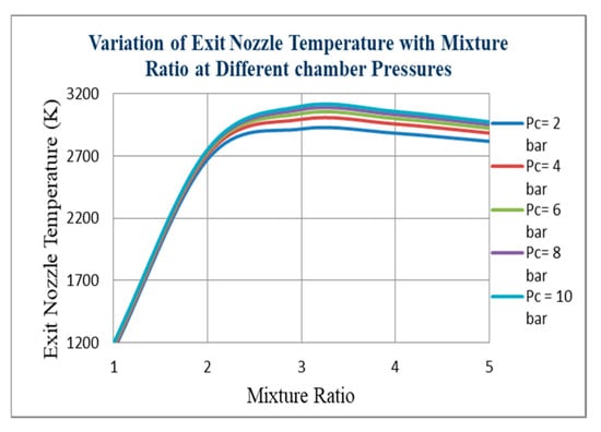 Nozzle Exit Temperature vs. Mixture (O/F) ratio.