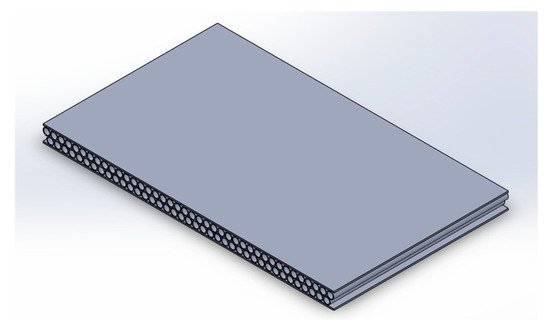 When there are three layers of cylindrical structures placed one above the other, joining their centers gives rise to a hexagon. The overall length and breadth of the model remained at 198 mm and 160 mm, while the thickness increased to 10 mm. Compressive loads were gradually applied, and it was found that the model could withstand up to 11.10 kN with the thickness reducing to 14.9 mm (shown in Figure 9).