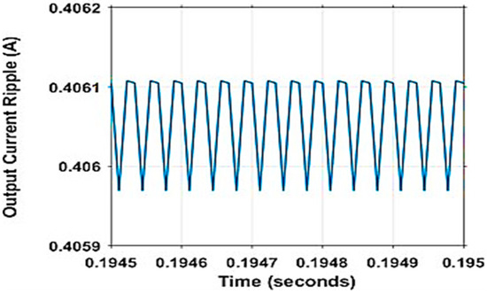 The LED current and current ripple, LED voltage and voltage ripple are depicted in Figure 3, Figure 4, Figure 5 and Figure 6, respectively.