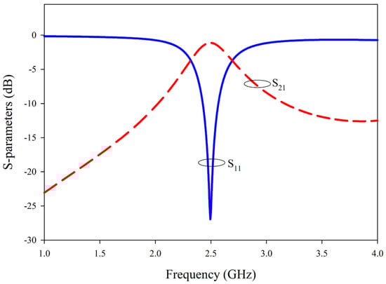 The performance of the resonator is analyzed from 1 to 4 GHz. The reflection and transmission characteristics of the resonator are provided in Figure 2. The resonator proves to be a band-pass device with a bandwidth of 372 MHz.