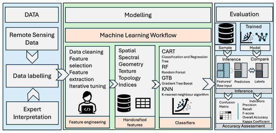An illustration of a machine learning workflow for remote sensing.