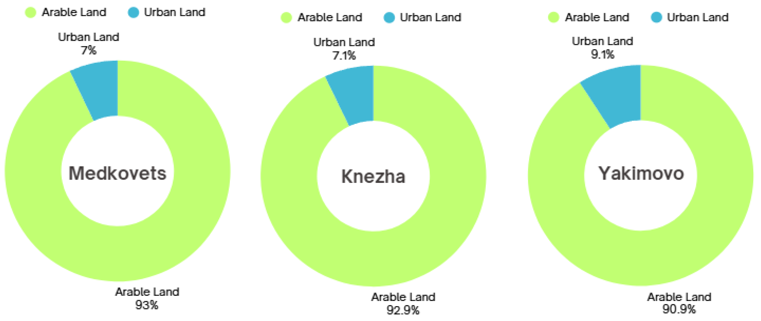 This study focuses on three municipalities in Northern Bulgaria—Medkovets, Yakimovo, and Knezha—selected based on their high concentration of arable land. According to the Bulgarian National Statistical Institute [