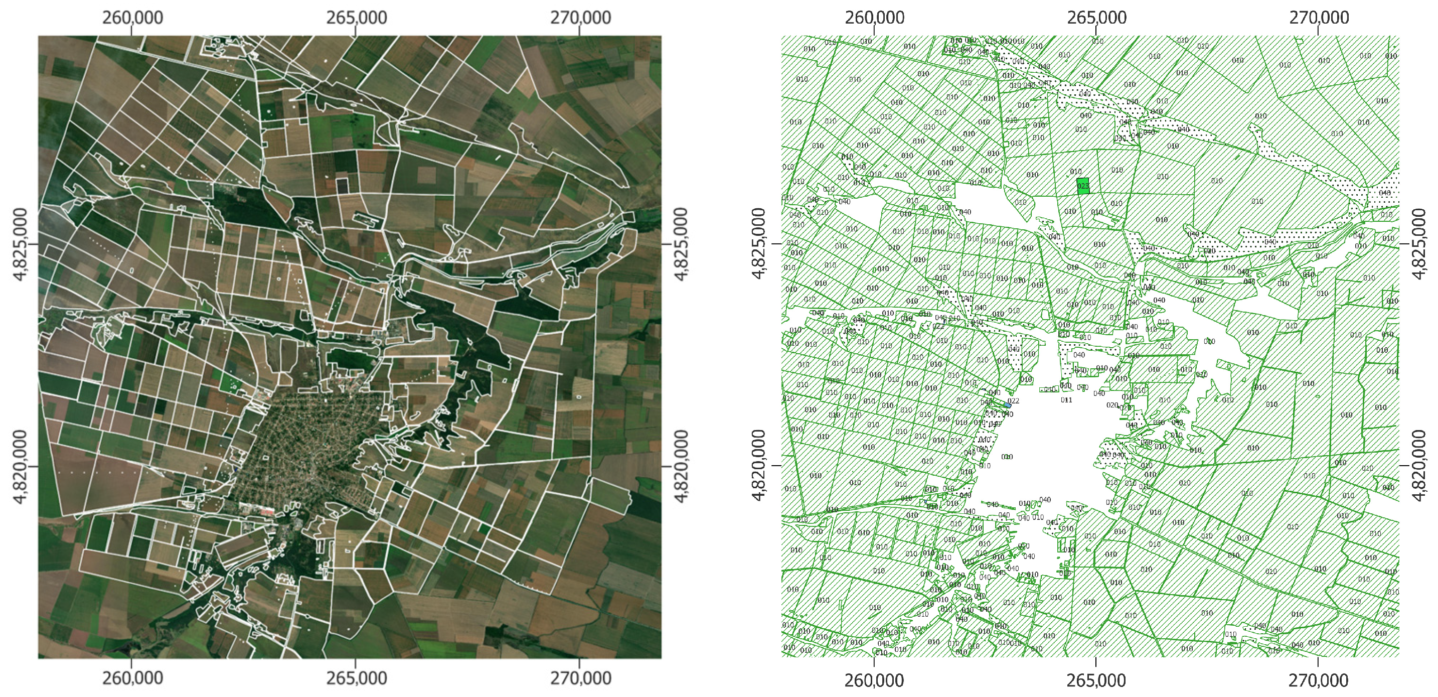 This study focuses on three municipalities in northern Bulgaria—Medkovets, Yakimovo, and Knezha—selected for their agricultural prominence and high concentration of arable land. Medkovets and Yakimovo are adjacent to each other and share similar agro-climatic conditions, characterized by continental climate, fertile plains, and dominant cereal cultivation. Their proximity allows for comparative analysis under similar environmental and management regimes. Extraction from the public parcel data for the area of Medkovets is shown in