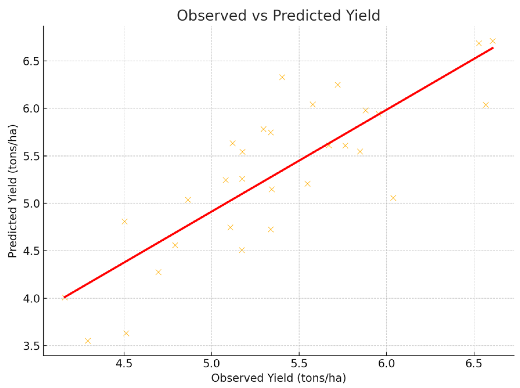 Figure 7 represents observed versus predicted yield and illustrates the model’s behavior.