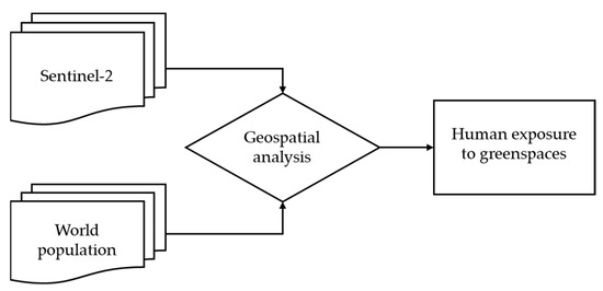 Schematic representation of the methodological flowchart for calculating human exposure to green spaces.