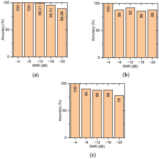 The performance of the proposed methodology is verified for various noise levels, and the accuracy is shown in Figure 4.