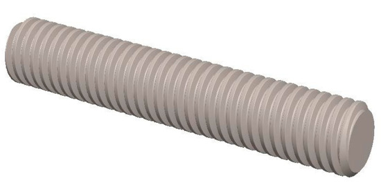 In this project, a trapezoidal thread for a lead screw is chosen because buttress threads can only be loaded in one direction. Furthermore, square threads are weaker at the root compared to trapezoidal threads, are difficult to manufacture, and hence more expensive than trapezoidal screws. We have selected the Single start T8 lead screw with pitch = 2 mm. The CAD image of the lead screw used is shown in Figure 3.