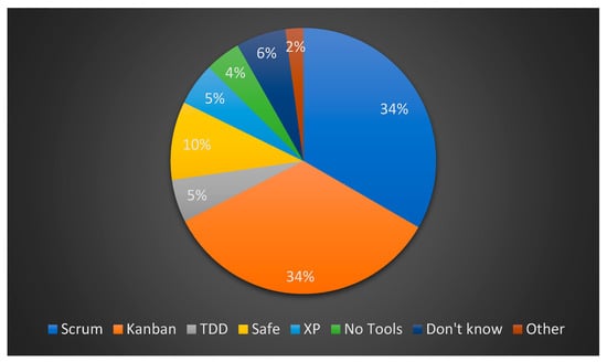 Alongside Scrum, Kanban has emerged as a valuable Agile tool, particularly in managing workflow efficiency and reducing bottlenecks. Kanban is a visual management system that enables teams to track work items in real time, ensuring a continuous flow of tasks while maintaining process flexibility []. Unlike Scrum, which operates in fixed iterations, Kanban allows for a more fluid and demand-driven approach, making it well suited for projects with evolving priorities. The results of our survey indicate that Kanban is among the most widely adopted Agile methodologies in Moroccan companies, further supporting its integration into our framework.