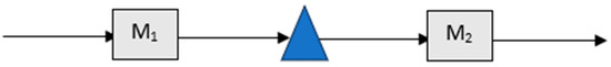 Consider a production system consisting of two unreliable machines and a buffer with limited capacity placed between them (Figure 1). Machine M1 processes workpieces and transfers them to machine M2 with temporary storage in the buffer. Due to random failures and repairs, the system’s performance is influenced by blocking (when the buffer is full and M1 cannot continue working) and starvation (when the buffer is empty and M2 has no work to process).