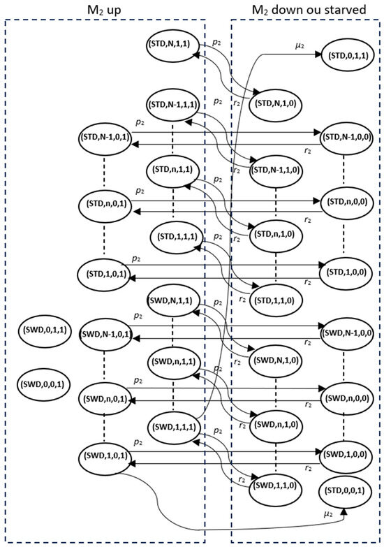 - M2 Down or starved: This section includes all states where M2 is down or starved, meaning it has failed and is undergoing repair or starved.