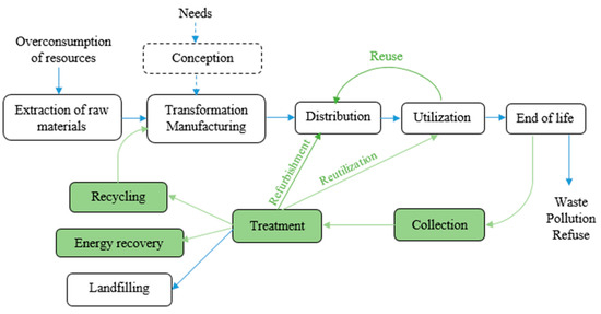 11]. By fostering regenerative systems, the circular economy reduces dependency on finite resources and mitigates environmental impacts. It integrates processes such as resource extraction, manufacturing, distribution, and end-of-life recovery through recycling, reuse, and resource regeneration [