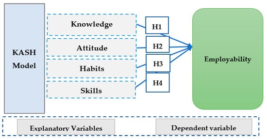 Four hypotheses were developed to assess the impact of each KASH model dimension on engineers’ employability, aiming to identify the most predictive factors. The next section justifies each hypothesis:
