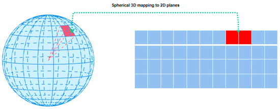 Schematic diagram of spherical 3D mapping of coordinates to the 2D plane.