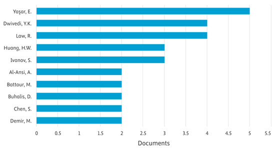 Figure 1 shows that Yasar E. was the most productive author with five documents, followed by Dwivedi Yogesh K. and Law Rob with four documents. These authors contributed to the knowledge of ChatGPT and the tourism industry, including tourism education.