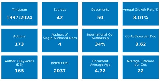 In total, 50 articles from the Web of Science (1997–2024) highlighted key trends in cold chain management research. Figure 2 summarizes the dataset, noting an 8.01% annual growth rate, 22 citations per document, and strong international collaboration (34%). Publication numbers spiked in 2008, 2017, and 2021, reflecting advancements in radio-frequency identification (RFID) technology and the pandemic-driven vaccine distribution. These findings showed trends and intellectual structures. Lam and Tang [10] and Lau et al. [21] discussed the growing focus on technology-driven cold chain solutions.