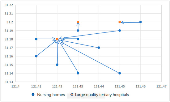 | 9 | Longhua Street Nursing Home | 121.46 | 31.15 | 85 |