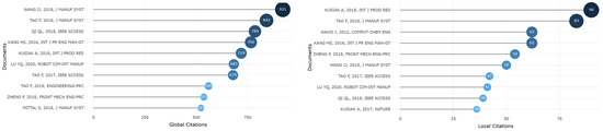 Prior influential studies have demonstrated the academic recognition of network-based bibliometric methods in identifying key contributors and collaboration patterns. For instance, Tao Feng’s 2018 article (Journal A) received around 786 citations, and Qi Li’s work in IEEE Access garnered approximately 766 citations, reflecting strong global academic impact [17,18]. Meanwhile, Kusiak A.’s 2018 article in International Journal of Production Research achieved first-tier national ranking with 90 citations, underlining its significance in the regional academic community [17]. These cases collectively underscore the methodological relevance of author collaboration and knowledge-structure analysis in bibliometric studies. These findings suggest how specific research works influence academic and research trends across different regions (Figure 3).