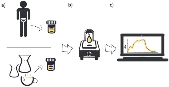 Schematic diagram of the method: (a) patient’s sample or phantom fabrication, (b) spectroscopic measurements, and (c) spectra comparison.