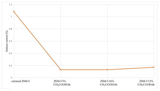 | Sample | Ion Exchange Time [h] | Acid Concentration [%] | Loss on Ignition [%] | %Na | %Al2O3 |