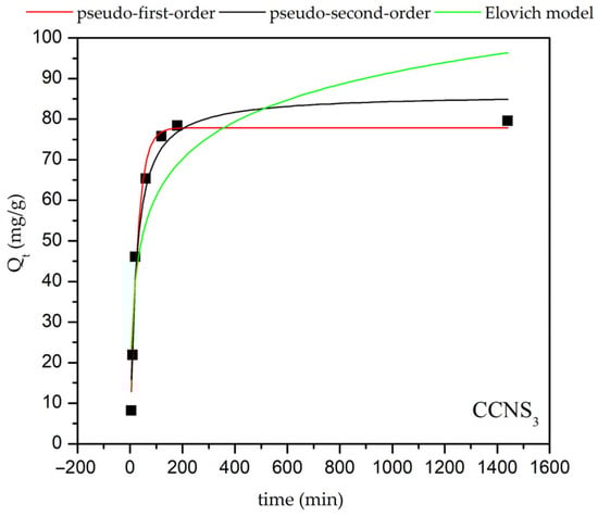 Fitted kinetic models for methylene blue adsorption onto CCNS3 sample.