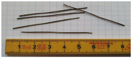 Basaltex is the other type of basalt fiber used in the study. It is soft, composed of microfine strands of bundles that are slightly stiff but soften when treated and broken apart. It is about 30 mm in length with a flat cross-section already joined together in a bundle. See Figure 2.
