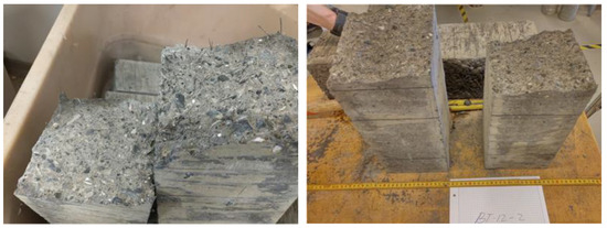 The layout of the experiment consisted of the use of two types of basalt fibers manufactured by two different manufacturers, with the dose values for basalt fibers of 12 kg per cubic meter of concrete. The research method was based on “EN 14488-3 Testing sprayed concrete—Part 3: Flexural strengths (first peak, ultimate and residual) of fibre reinforced beam specimens”.