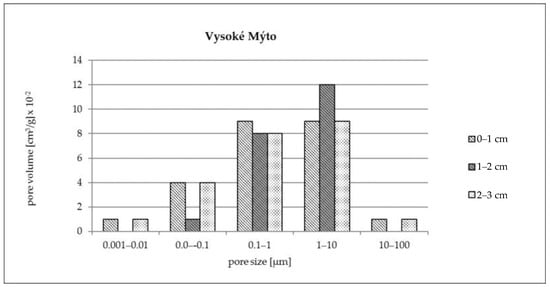 Pore size distribution of individual layer of the brick: Vysoké Mýto (0–1 cm, 1–2 cm, 2–3 cm from the cover).