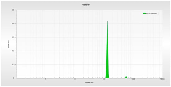The hydrodynamic diameter of the biosynthesized TiO2 NPs was determined using particle size analysis. The mean particle size of the biosynthesized TiO2 NPs was estimated to be 129.68 nm. Figure 4 shows the particle size distribution curve for the biosynthesized TiO2 NPs.