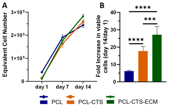 2.3. In Vitro Cell Culture on Electrospun Scaffolds
