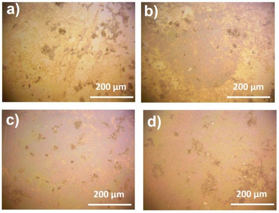In the fabrication of substrates, the concentration of silver nitrate solution was optimized to achieve a higher value of enhancement coefficient and greater reproducibility of the signal throughout the surface of the substrate. Silver nanoparticles’ distribution uniformity over the substrates was analyzed using optical microscopy (Figure 2).